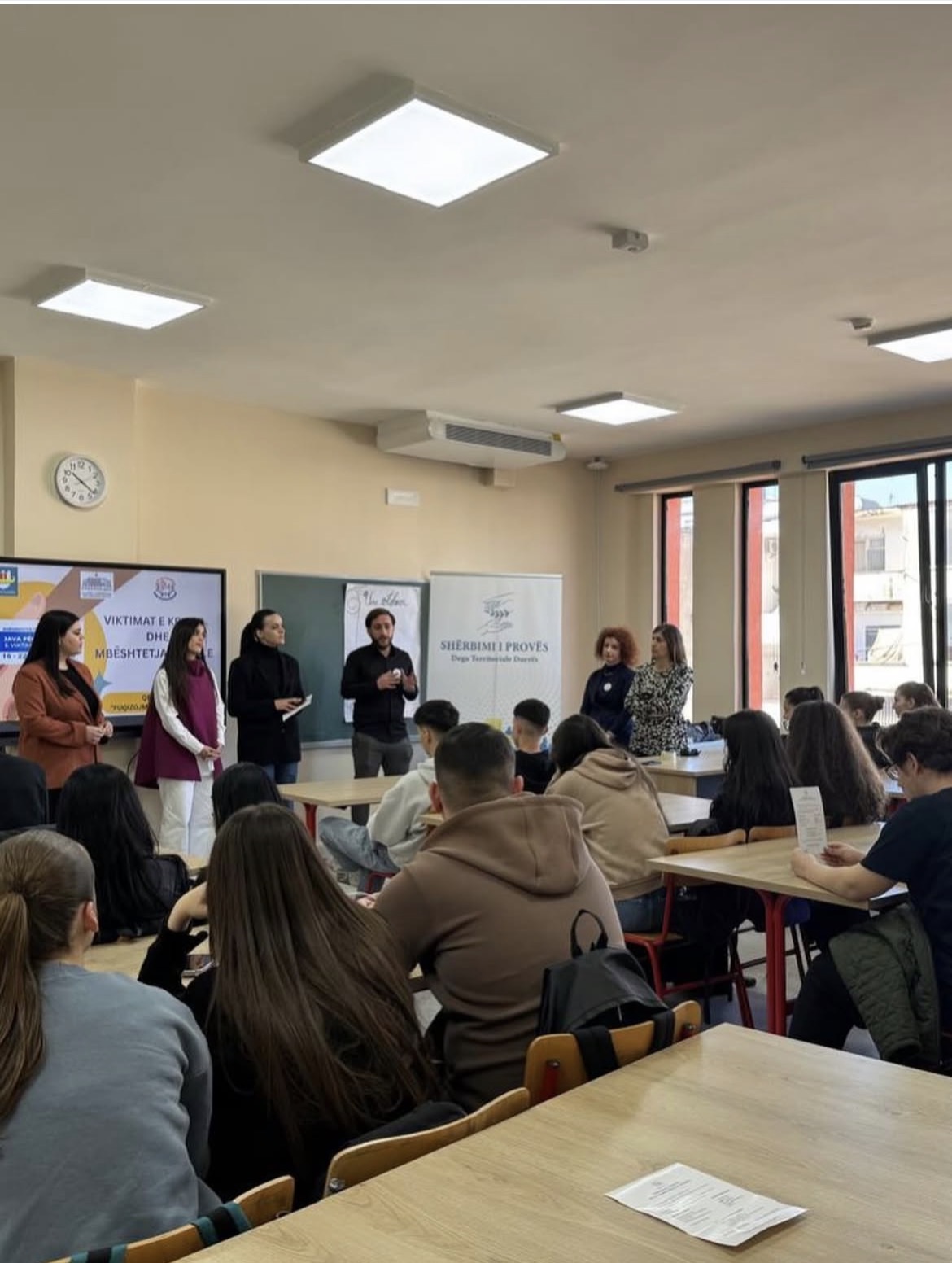 QPKMR ishte në Shkollën e Mesme “Naim Frashëri” në Durrës, ku u zhvilluan sesione sensibilizuese me nxënësit mbi format e krimit, mekanizmat e mbrojtjes dhe rëndësinë e qasjes parandaluese për të rinjtë.