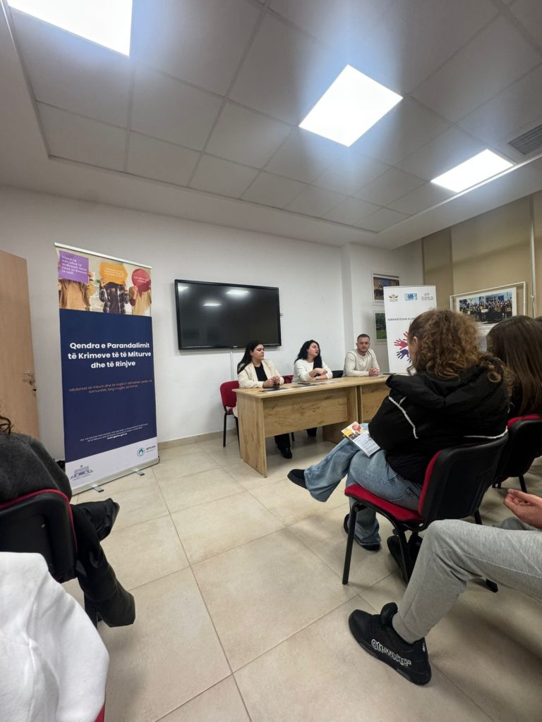 Në kuadër të zbatimit të Strategjisë Ndërsektoriale për Drejtësinë për të Miturit 2022–2026, me fokus objektivin “Forcimi i mekanizmave të drejtësisë restauruese dhe ndërmjetësimit”, QPKMR në bashkëpunim me DHKN dhe Rotary E-Club Albania zhvilluan një takim me nxënës të Gjimnazit “Sami Frashëri”.
